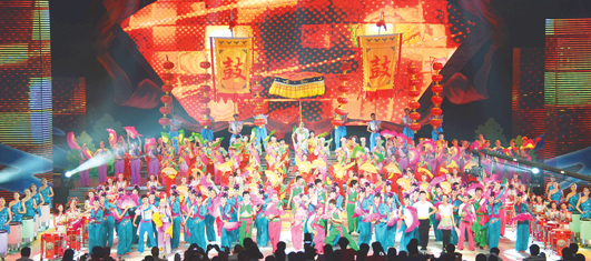 大型文藝晚會《風起淮河》以“舞紅花鼓燈,建設(shè)新蚌埠”為主題,由“風生水起花鼓紅”、“淮水風情”、“華夏溢彩”、“五洲競放”、“好一個花鼓燈”等五個篇章組成,節(jié)目具有蚌埠獨特的標識感,充分體現(xiàn)了“唱傳淮河文脈,解讀蚌埠新韻”的內(nèi)涵,全面展示了淮河風情、民族特色、蚌埠情懷和時尚潮流。